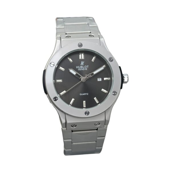 Yeh Hublot Classic Fusion Silver Edition premium first-copy watch ekdum luxury feel deta hai. Iska full silver stainless-steel body, clean white dial, aur signature Hublot screws is watch ko classy, modern aur ultra–premium look deti hain.